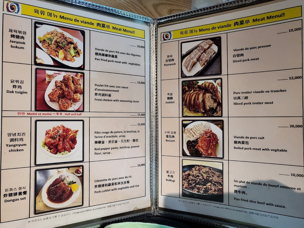 Arirang Restaurant offers a delightful fusion of Korean flavors, showcasing an impressive array of dishes that cater to diverse tastes. For meat lovers, the Samgyeobsal Pork Belly and Korean Fried Chicken stand out, each dish offering rich, savory flavors with a satisfying balance of textures. The Barbecue options also impress, grilled to perfection and served with a variety of sides that enhance the meal. Those seeking lighter options will enjoy the Kimbap, a Korean take on sushi that’s both refreshing and satisfying, while the Ddeokbokki, with its sweet and spicy sauce, offers a comforting yet bold flavor profile. For a truly immersive experience, don’t miss the Boiled Rice Cake Fishball, a traditional dish that combines tender rice cakes and flavorful fishballs in a rich broth. The Mise En Bouche À Base de Poissons offers a delicate seafood appetizer, perfect for those who appreciate fine fish preparations. For a hearty meal, the Soupe de Boulettes et Gâteau de Riz combines a flavorful broth with tender meatballs and chewy rice cakes, making it a comforting choice. To complement your meal, the Soju is an excellent beverage pairing, with its smooth finish adding a touch of authenticity to the experience. Whether you're in the mood for a feast or something lighter, Arirang’s menu promises a memorable dining experience with every dish.